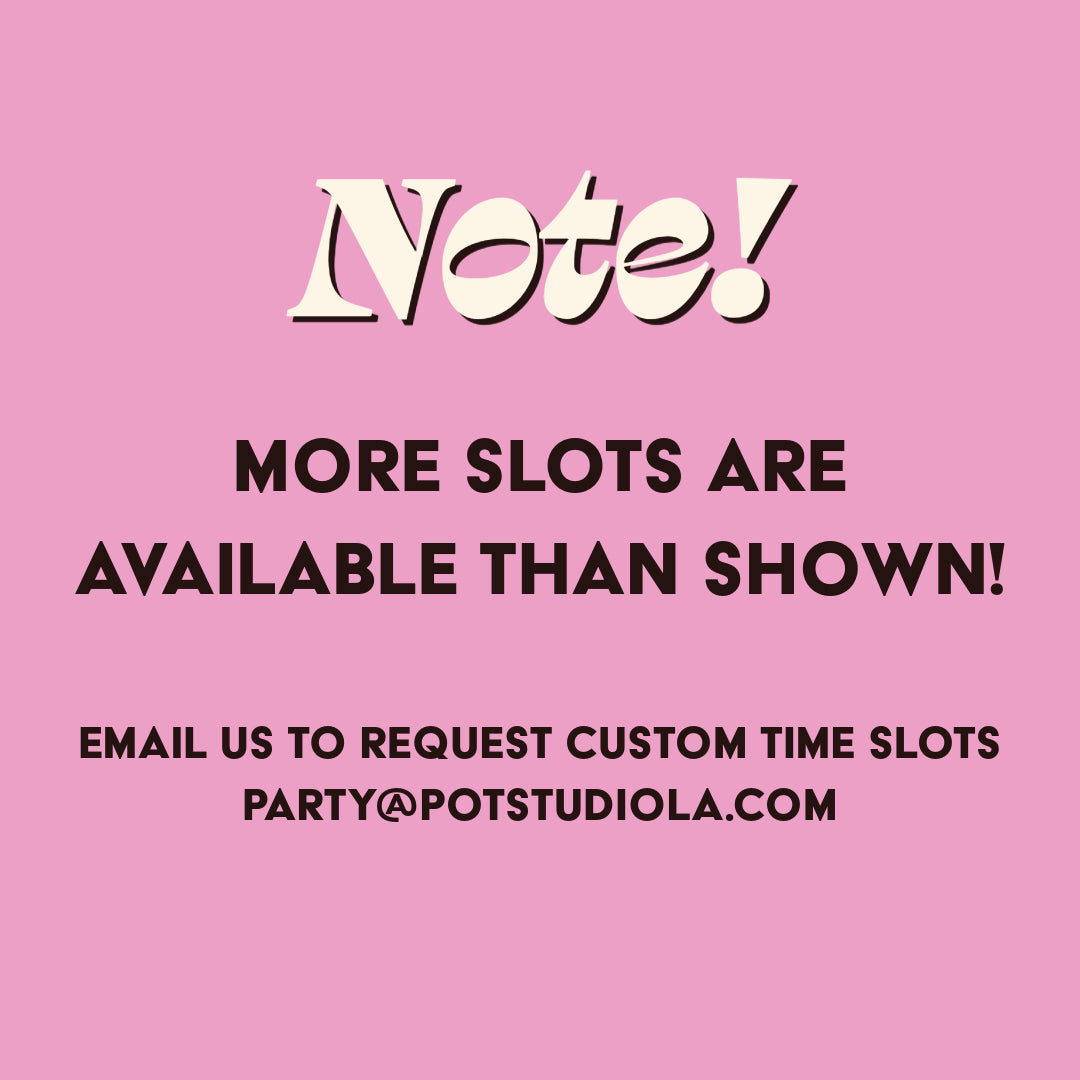 NOTE: More slots are available than shown! Email us at party@potstudiola.com to request custom time slots.